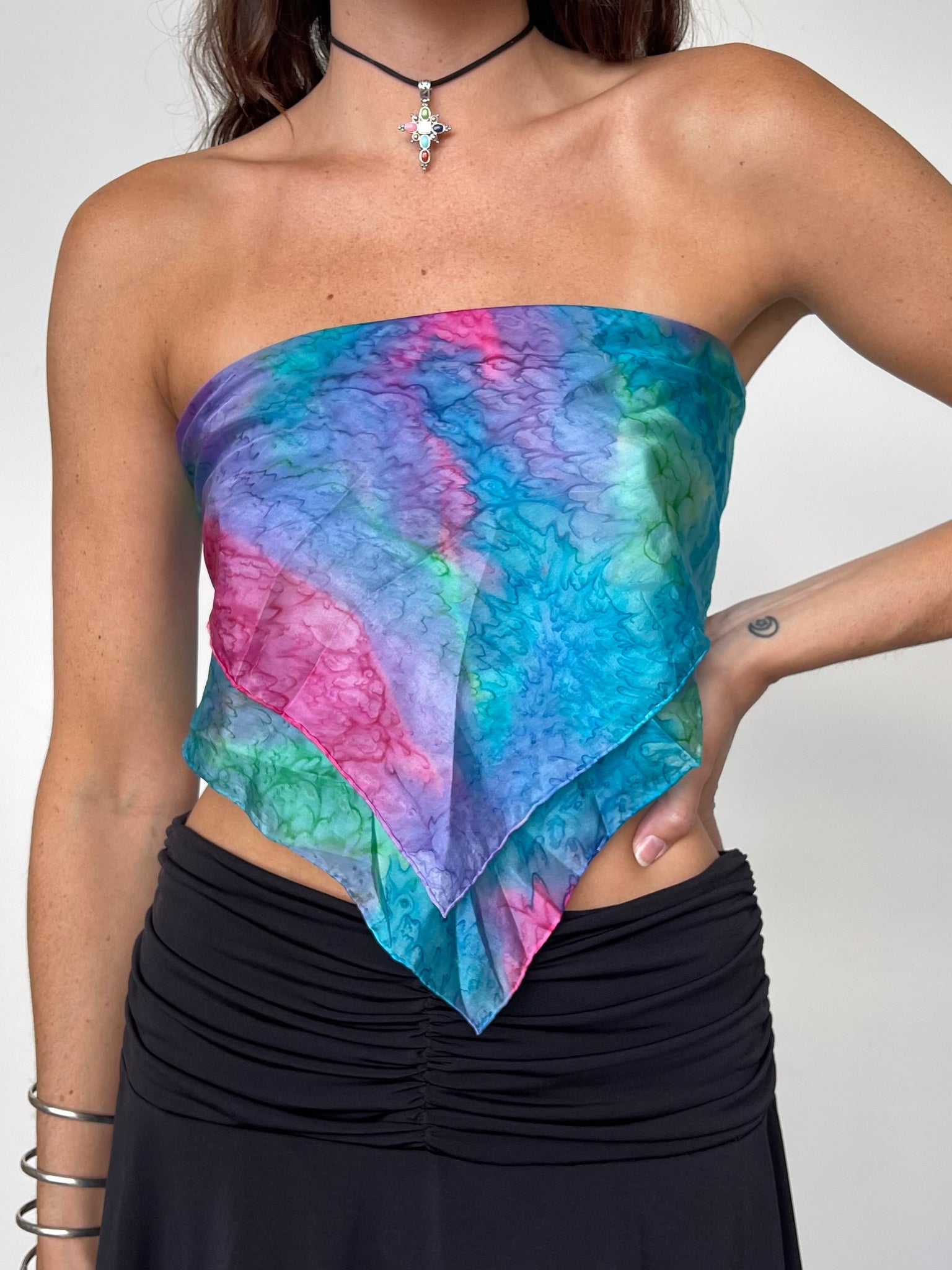 measure a similar scarf you own to ensure it will fit as a top!