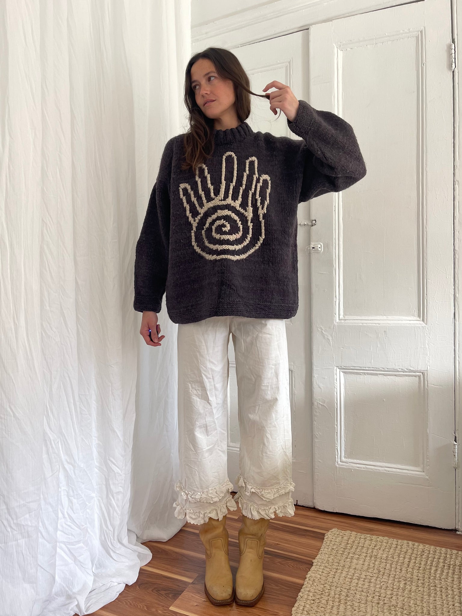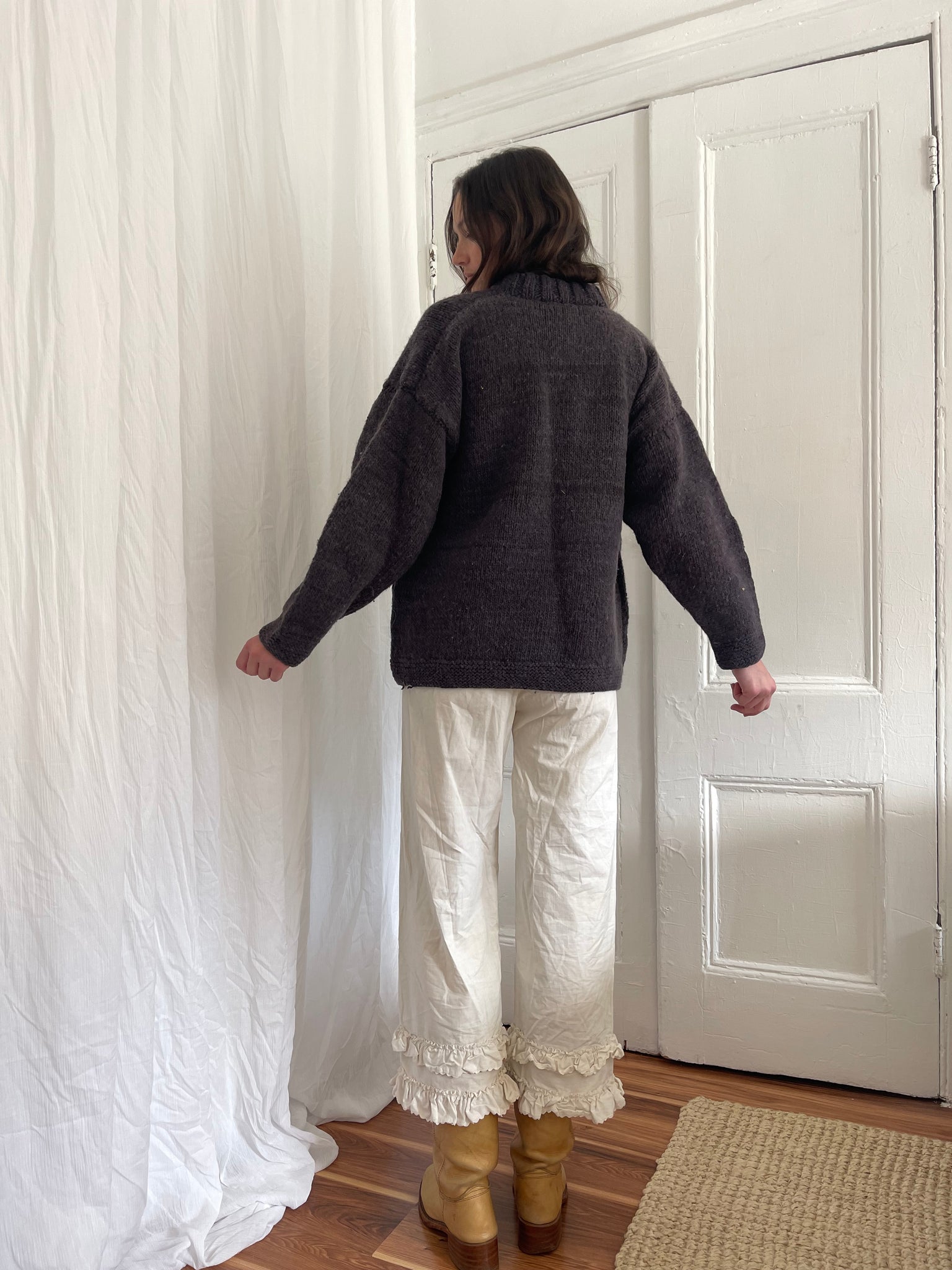 Heavy knit wool sweater; wears like a jacket due to thickness :)