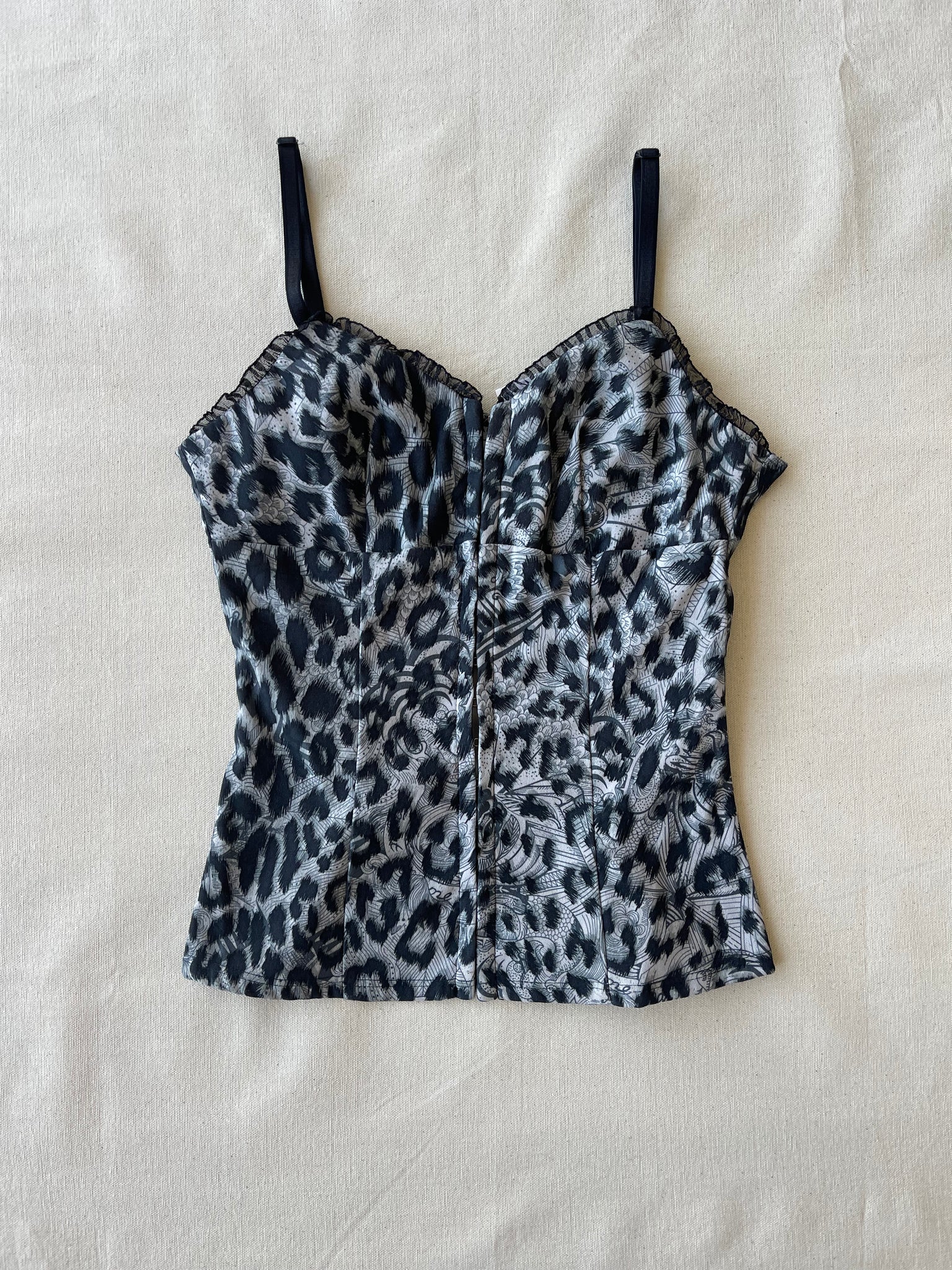 model usually wears a small; can be worn as shown comfortably on a small or fullly closed on XS